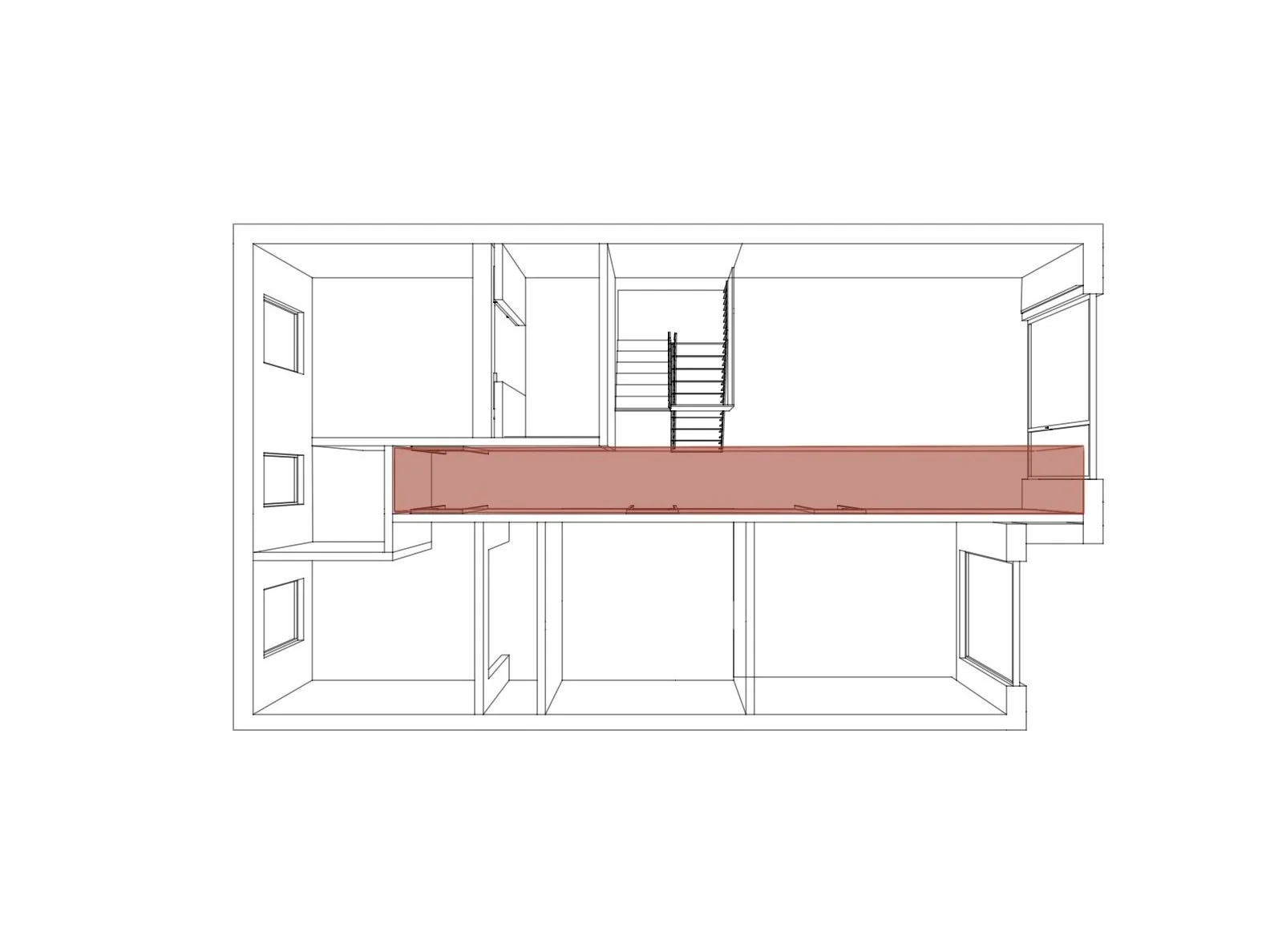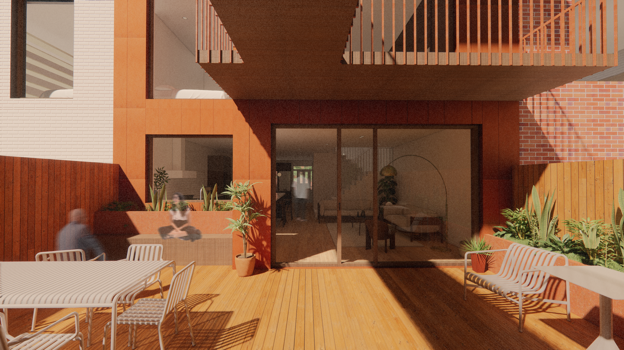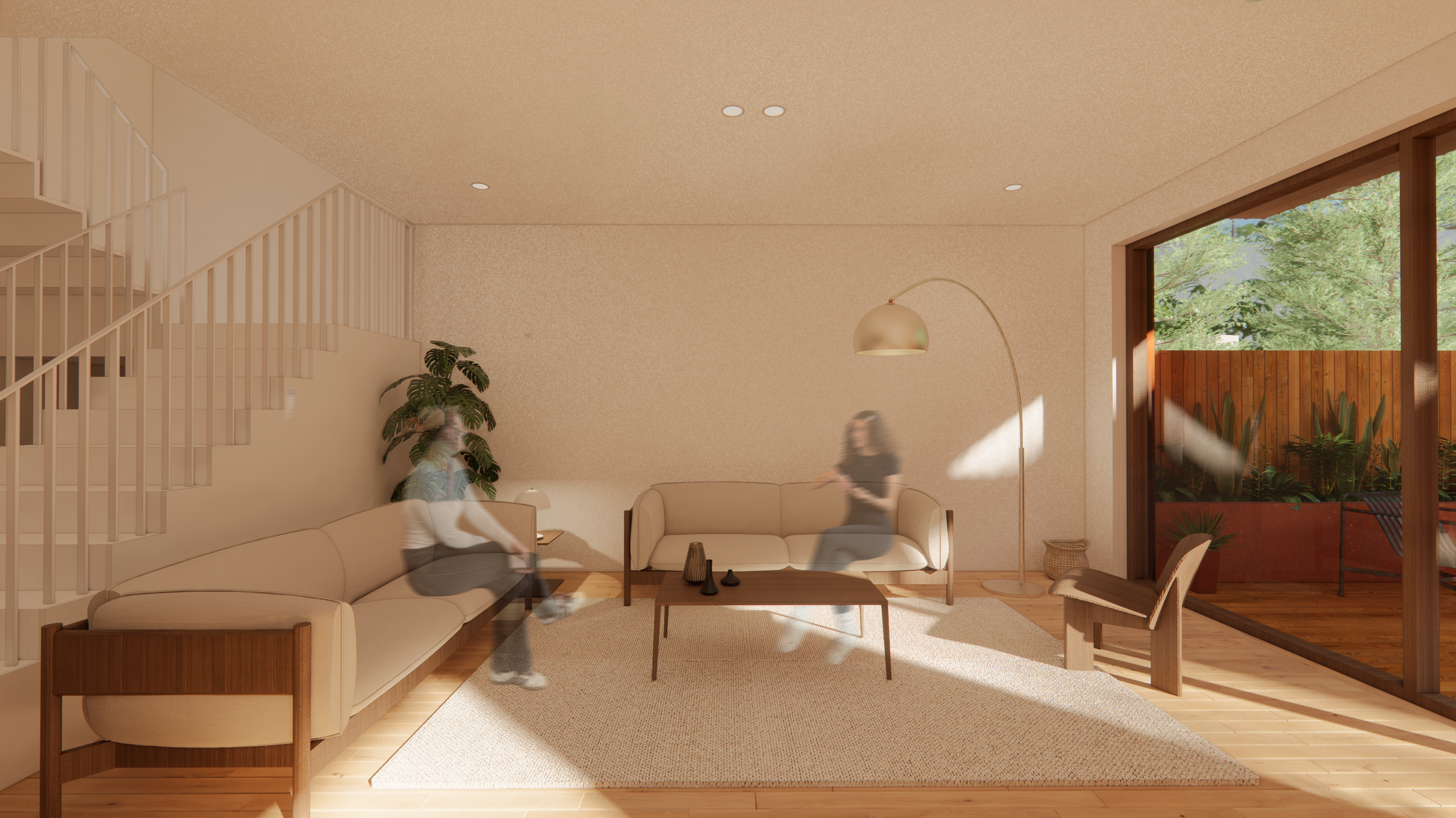 À travers cet aménagement, l’idée est de mettre en valeur les détails originaux déjà présents comme les escaliers extérieurs, les colonnes, les cadres de portes en bois ou encore le couloir. Toutes ces caractéristiques qui font l'âme de ce plex ont été intégrées au projet tout en répondant aux besoins de la famille. De plus, le couloir est gardé en tant qu’élément central autour duquel les espaces de vie vont s'articuler. Au rez-de-chaussée , on retrouve son empreinte grâce au travail du meuble sur mesure de l’entrée, à l'aménagement de la salle à manger et de la cuisine, et du sol qui tous réinterprètent les murs originaux. Ces aménagements délimitent l’effet du couloir dans la longueur qui est présent sans être réellement défini.