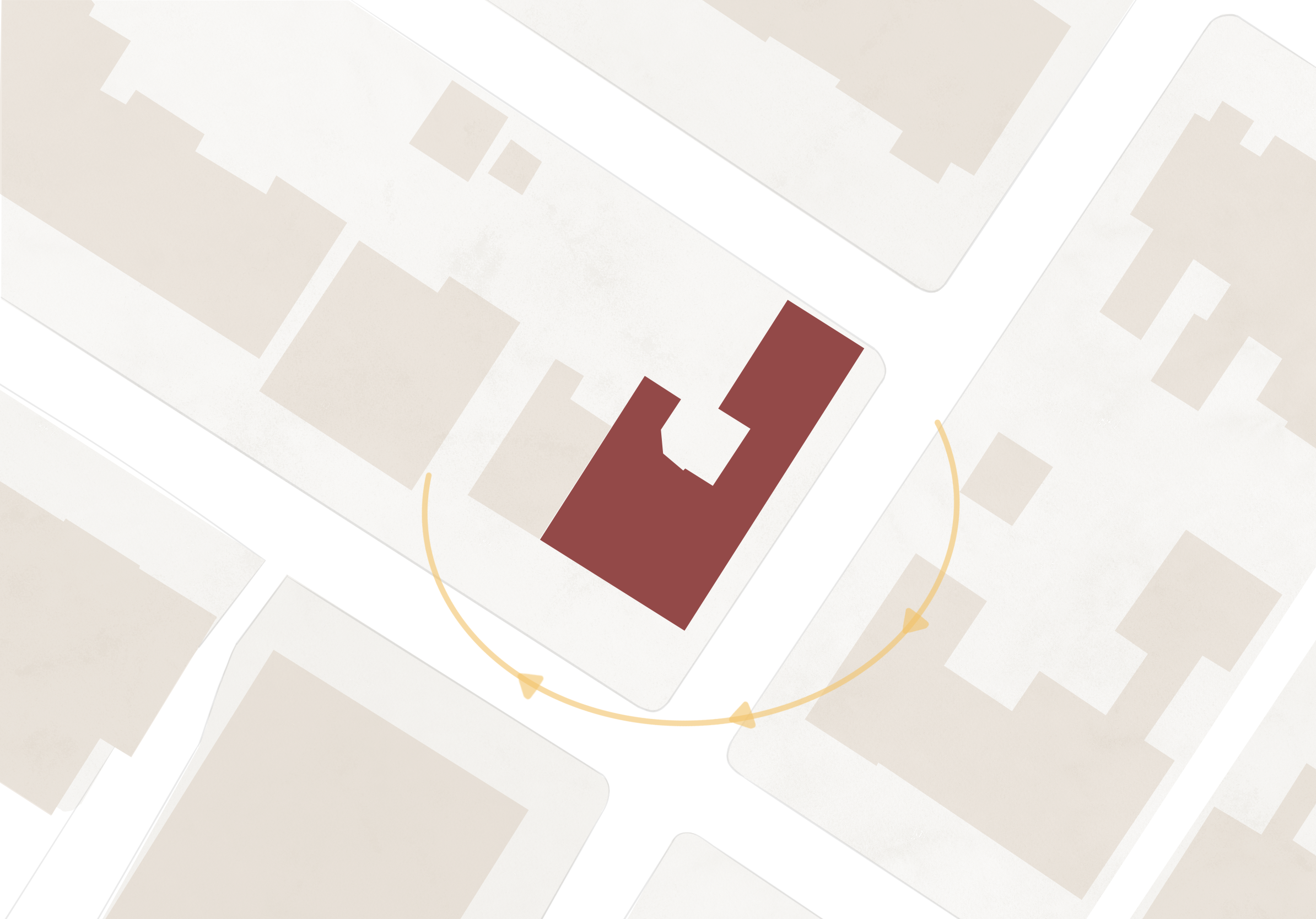 Cet environnement calme et familial, entouré de parcs et ruelles vertes, apaise sans dépayser. L’architecture du lieu épouse le nom qu’il porte : La virgule, une courbe douce, qui guide sans brusquer. L’organisation des espaces suit une gradation d’intimité, de l’accueil chaleureux vers des zones plus personnelles.